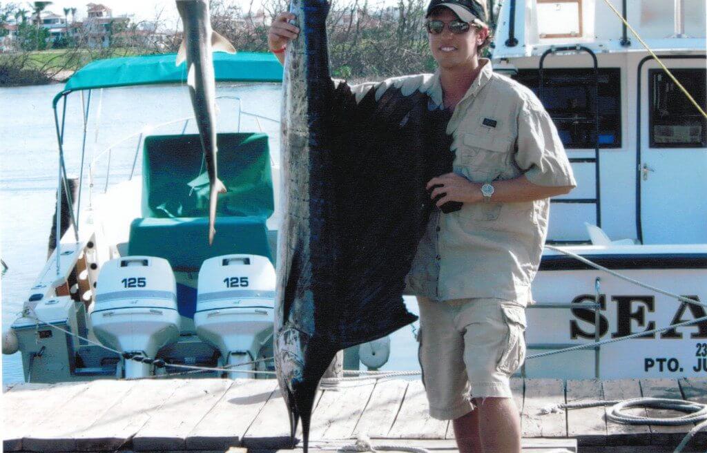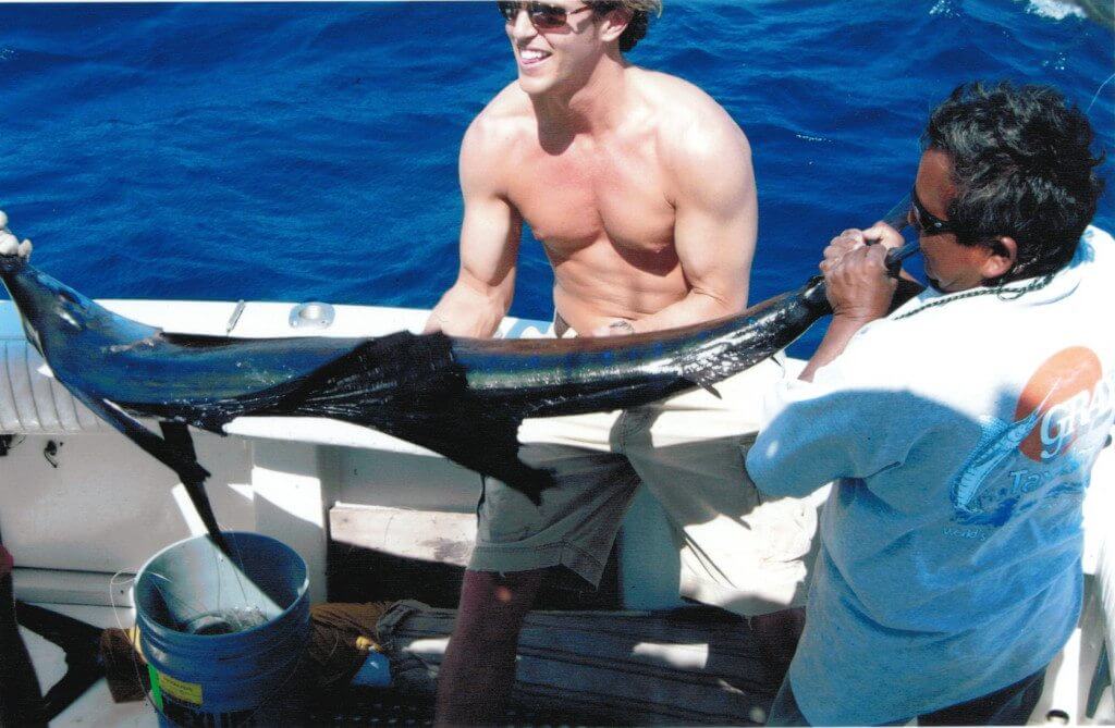 My dad and I catching a blue marlin in the Bahamas (They don’t make outfits in white like this anymore…for good reason)