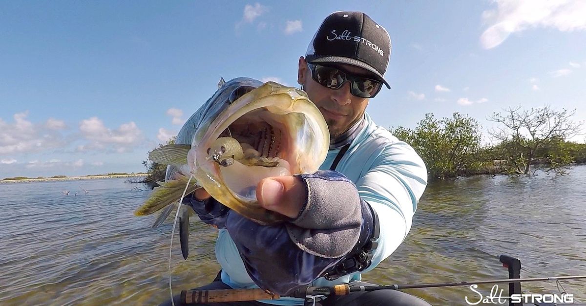 As I came up on another section of broken trees and mangroves, I threw a cast into the shadows and immediately picked up a snook.