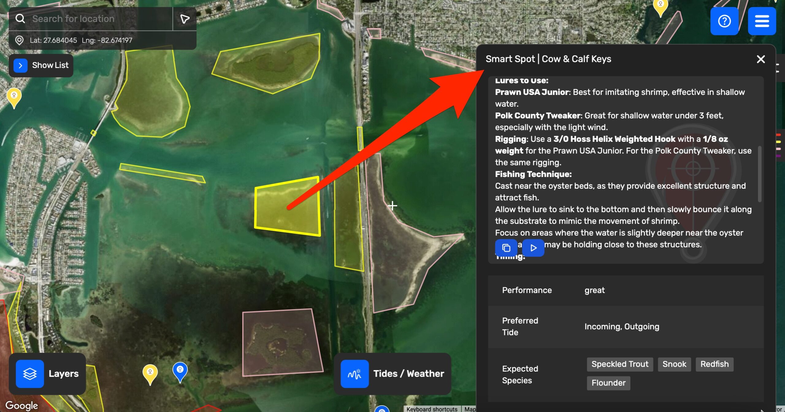 - Go to Smart Fishing Spots and check a couple spots you are familiar with