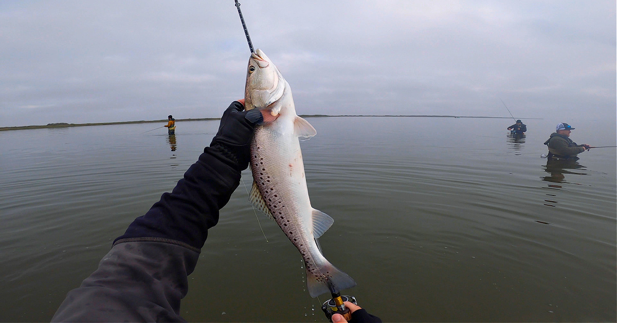 The idea behind this trip was to find stacked up schools of big trout looking for quick, high-calorie meals before the storm.